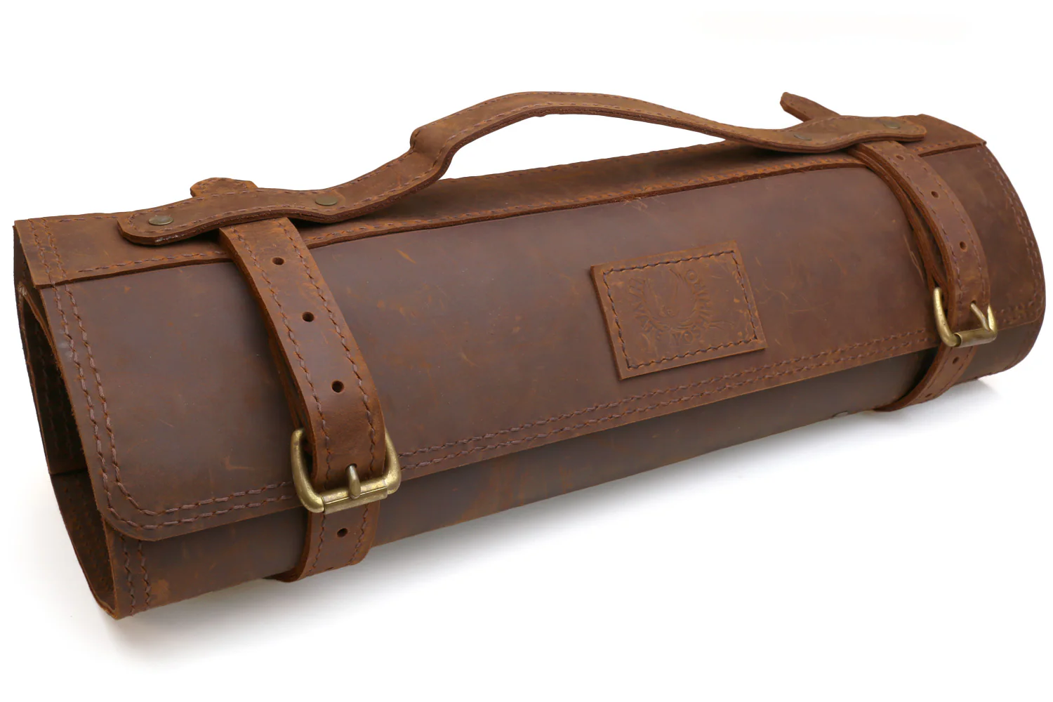 One of the key advantages of natural leather is its breathability. Being more porous than synthetic leather, it allows air to pass through, making the bag more comfortable to handle in warmer environments. This breathability also helps prevent moisture buildup, keeping your knives in better condition for longer periods.