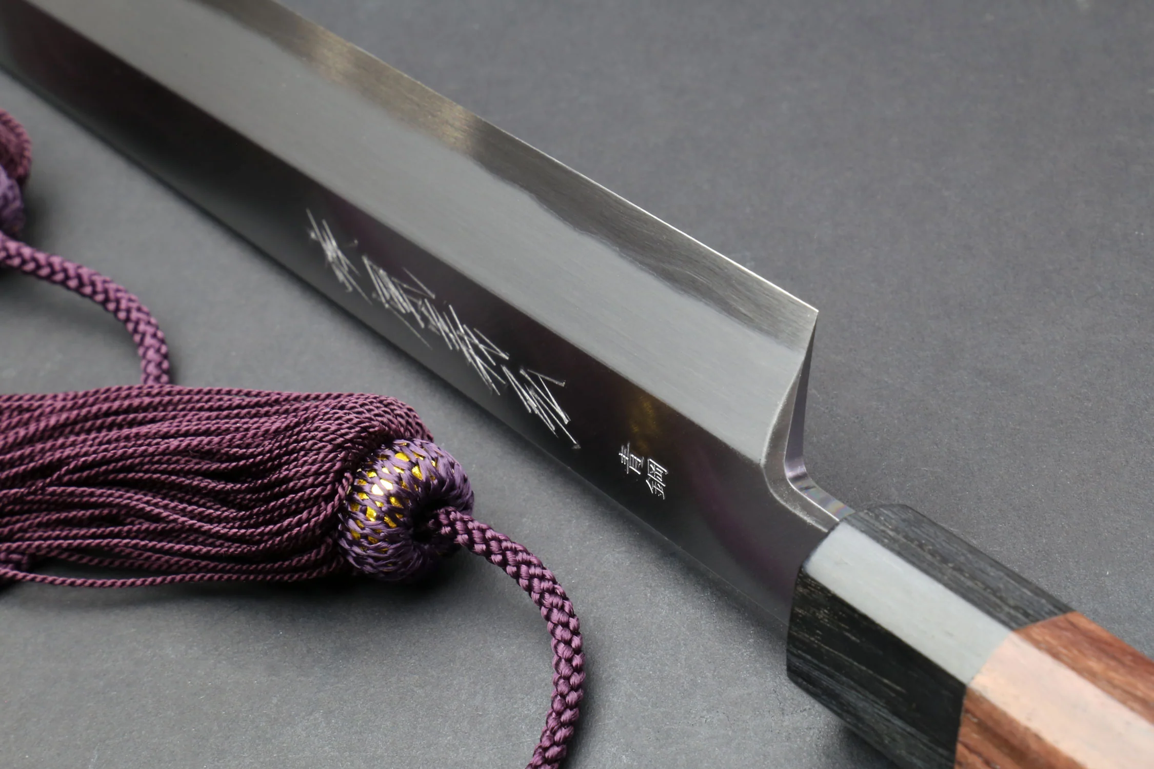 Forged from High Carbon Blue Steel #2 with a hardness rating of 63-64 HRC, this Hongasumi Yanagi Kiritsuke features a traditional single-edged grind, offering superior edge retention and the ability to achieve a finer edge compared to Kasumi-grade knives. It's an excellent choice for intermediate-level chefs and comes ready to use straight out of the box. Each knife is 100% handcrafted in Japan, ensuring that it is not mass-produced.