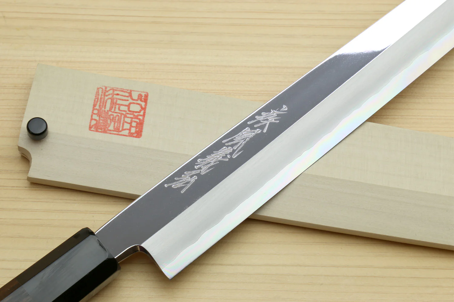 Yoshihiro Hongasumi Ginsan Mirror Polished High Carbon Stain Resistant Steel Yanagi Sashimi Knife Ebony Handle