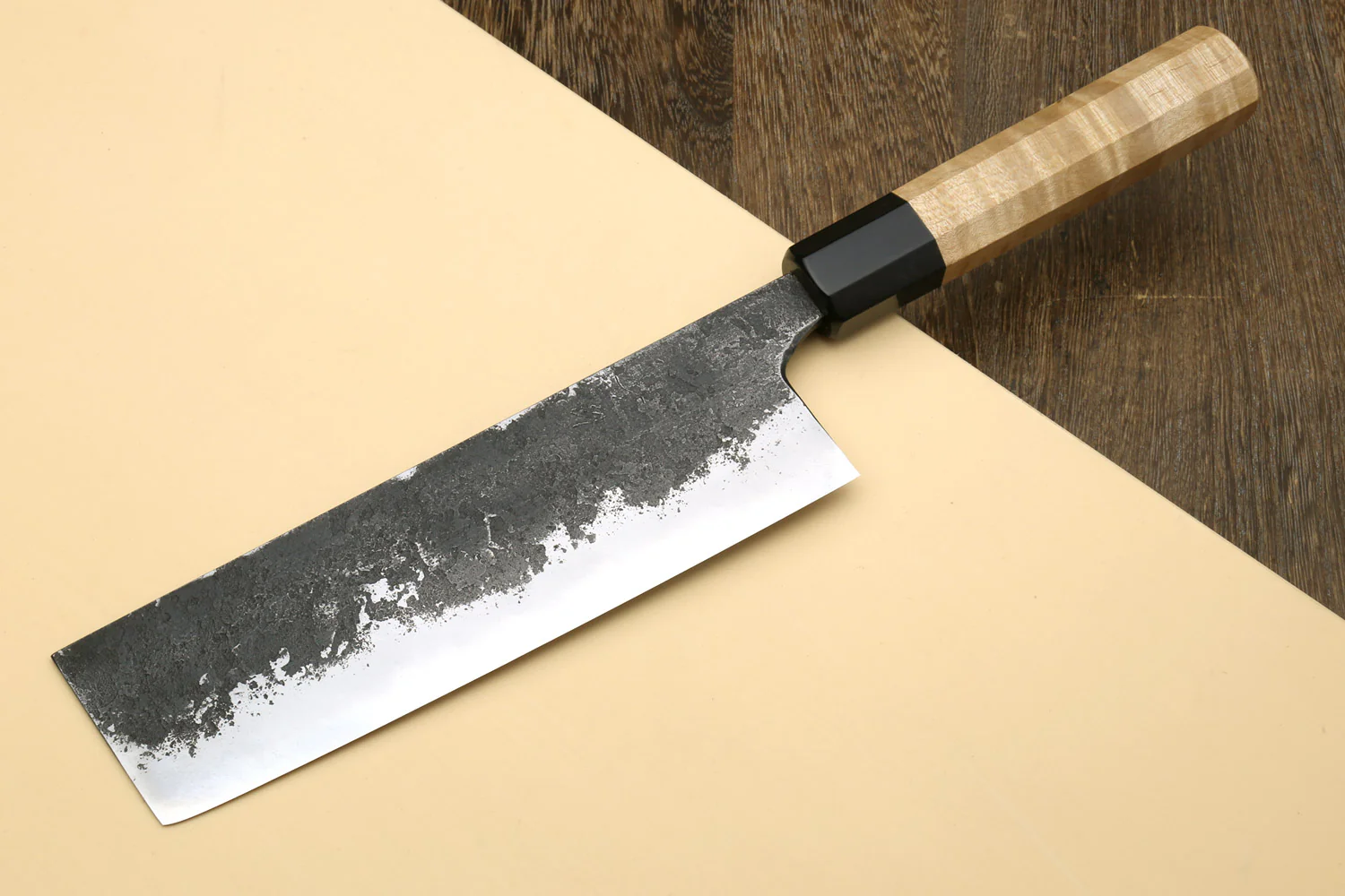 Whether prepping greens for a fresh salad or dicing vegetables for a hearty main dish, the Yoshihiro Mazaki Nakiri knife transforms everyday tasks into extraordinary culinary experiences. For optimal performance, sharpen exclusively with whetstones and hand wash immediately after use, particularly with acidic ingredients. Elevate your kitchen experience with this perfect fusion of beauty, craftsmanship, and utility.