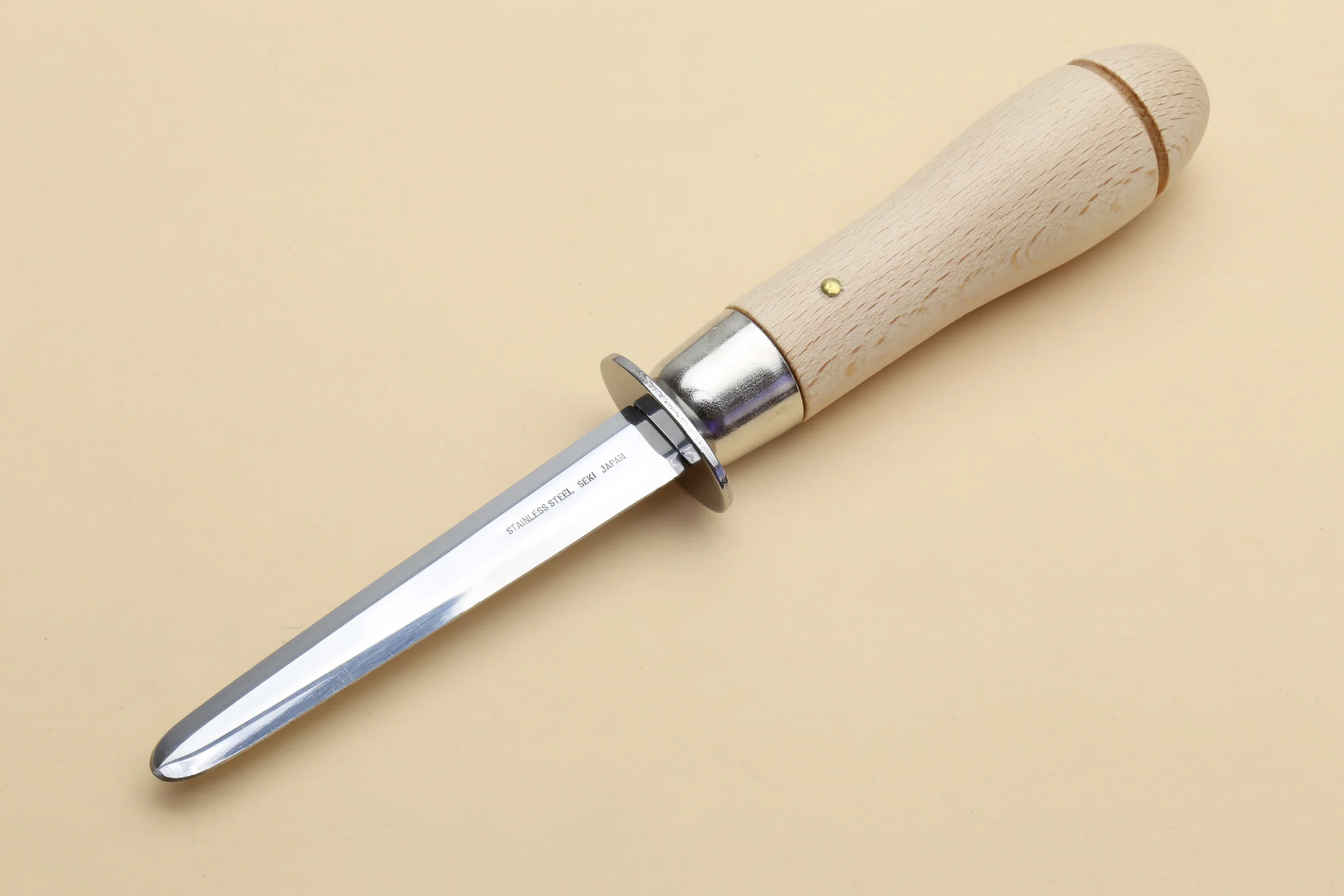 Available in two sizes to suit your needs: the Small option boasts a total length of 5.9 inches (150mm) with a blade length of 2.4 inches (63mm), perfect for smaller oysters, while the Large option measures 8.2 inches (210mm) in total length with a blade length of 3.7 inches (95mm), ideal for larger shellfish. Made in Japan, this oyster knife reflects the superior craftsmanship and quality that the region is renowned for.