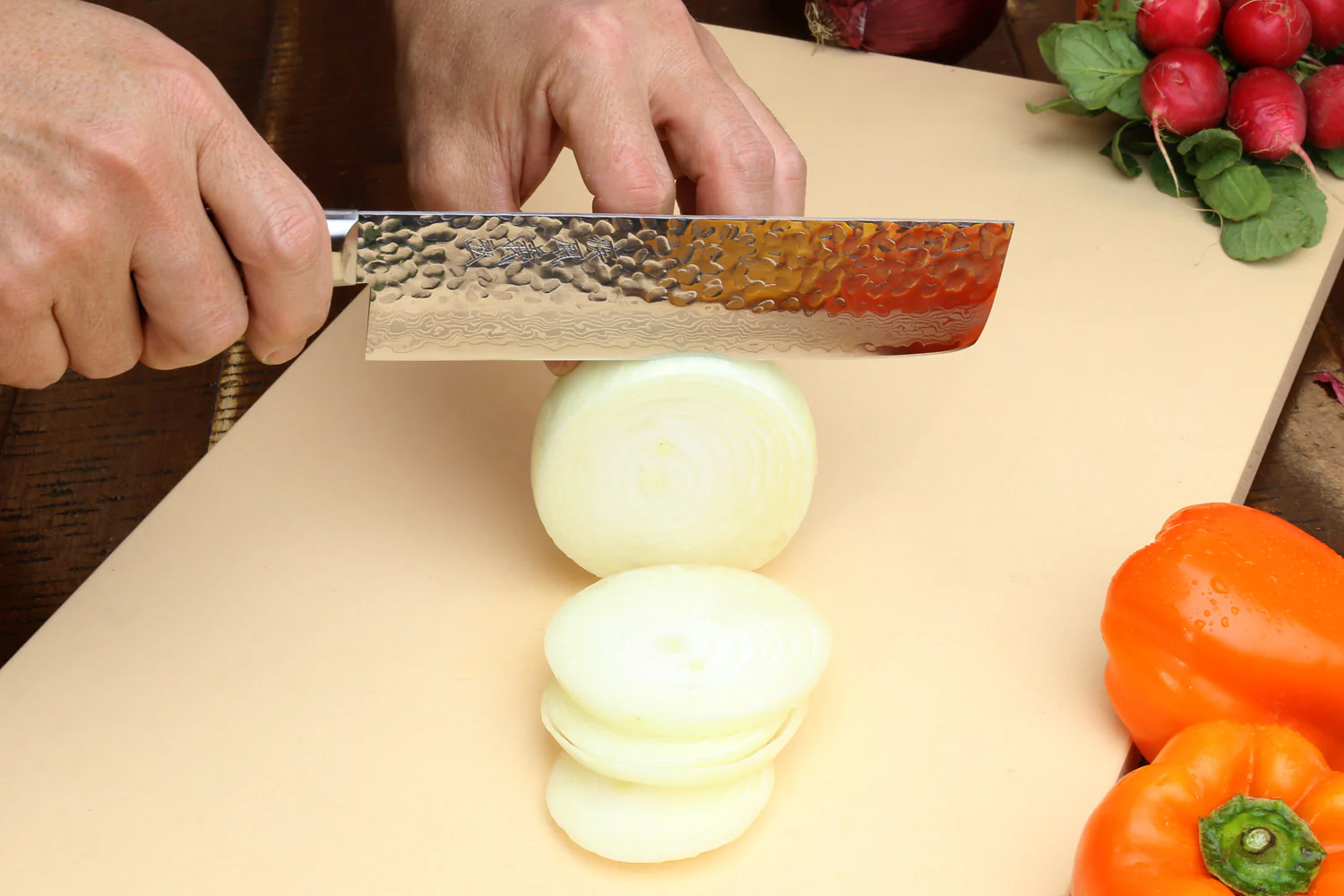 Forged and hammered with 16 layers of steel in the Damascus tradition with a VG-10 Core, the VG-10 Hammered Damascus Series has become a perennial best-seller, blending performance, beauty, and extraordinary value into every blade.